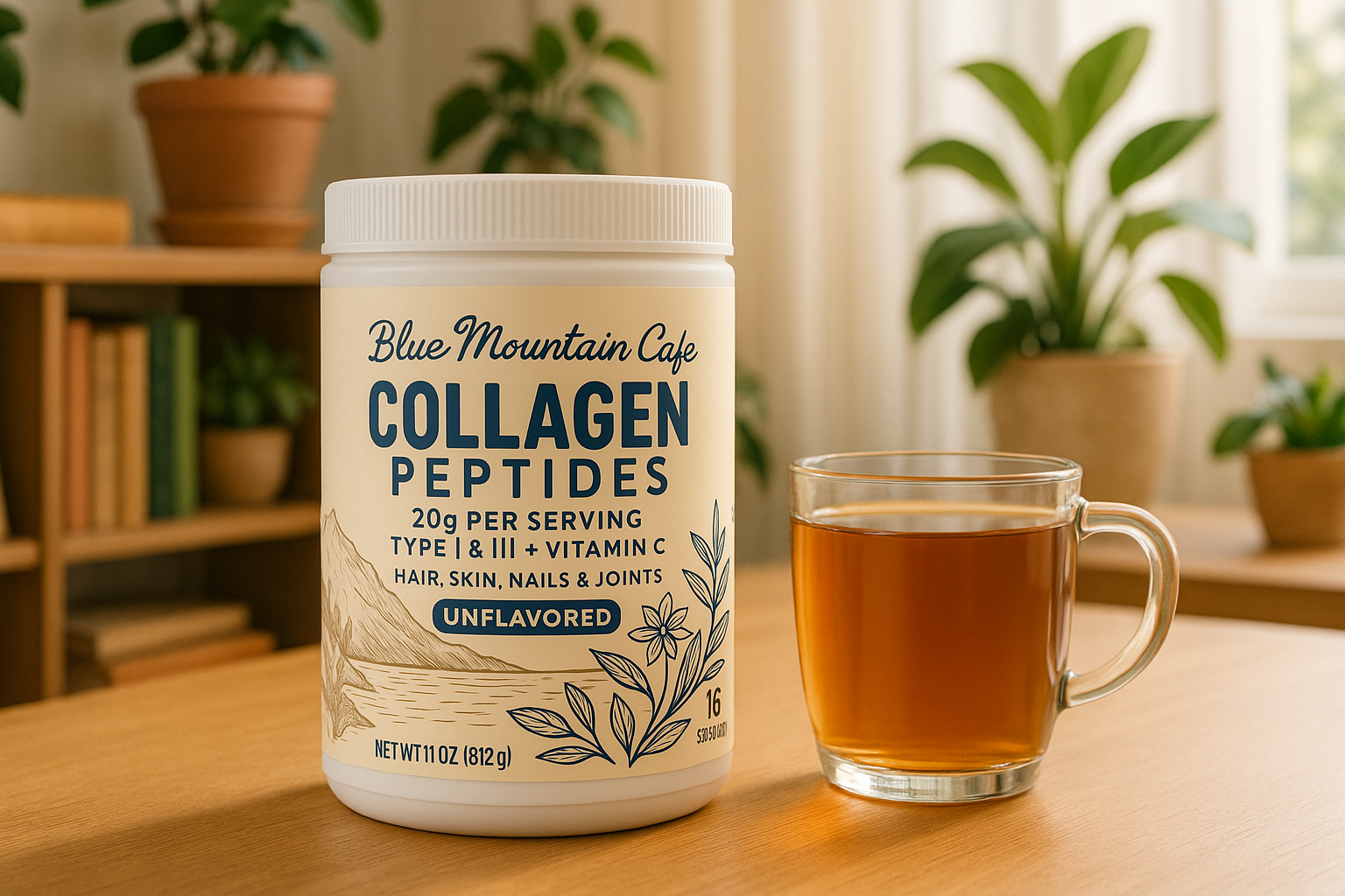 Blue Mountain Cafe® Collagen Peptides deliver pure, bioavailable collagen designed to support beauty, strength, and longevity from within. This unflavored, ultra-fine powder dissolves effortlessly into coffee, smoothies, tea, or water — providing essential peptides that nourish your hair, skin, nails, joints, muscles, and gut health. Clean, simple, and highly absorbable, this is your daily ritual for whole-body wellness.
